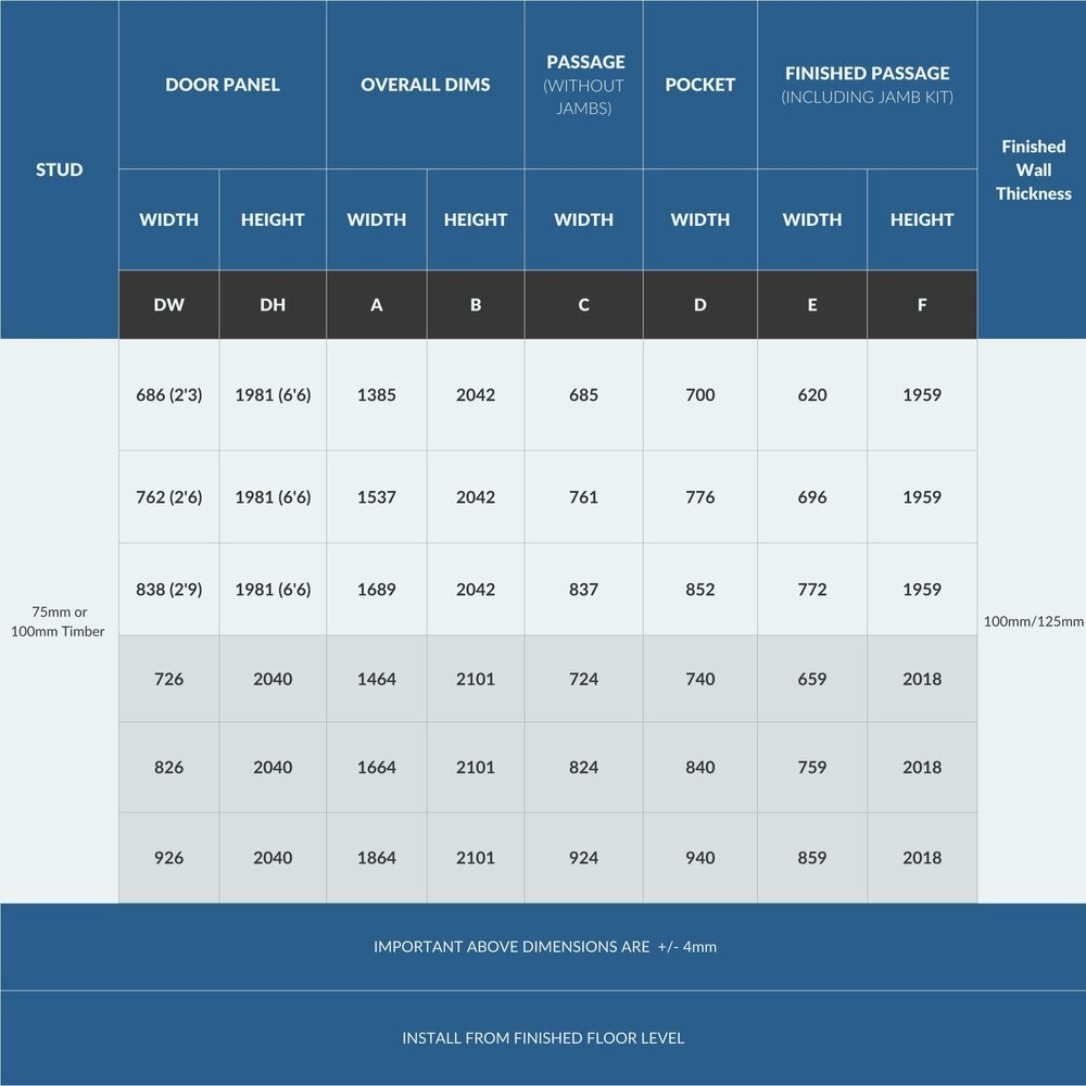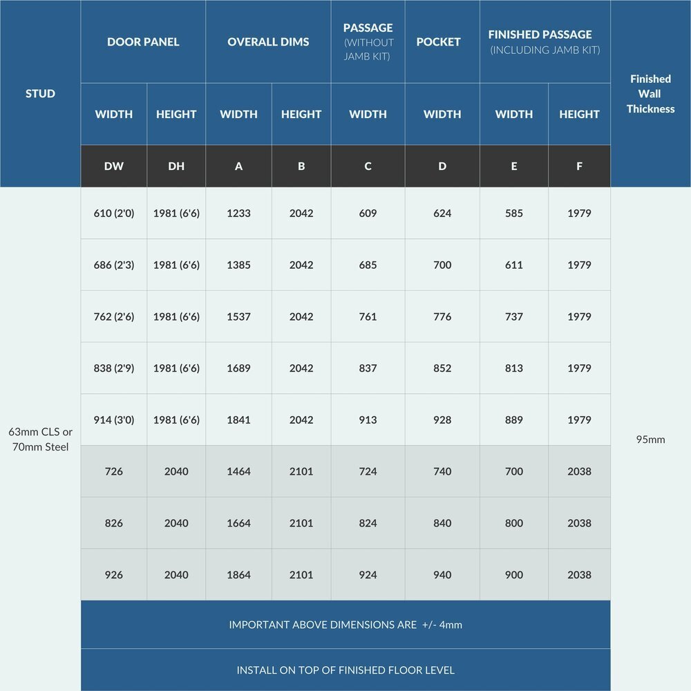 Please make sure you choose the right kit as returns incur return & restocking costs. See Technical Info for more Pocket Door help.