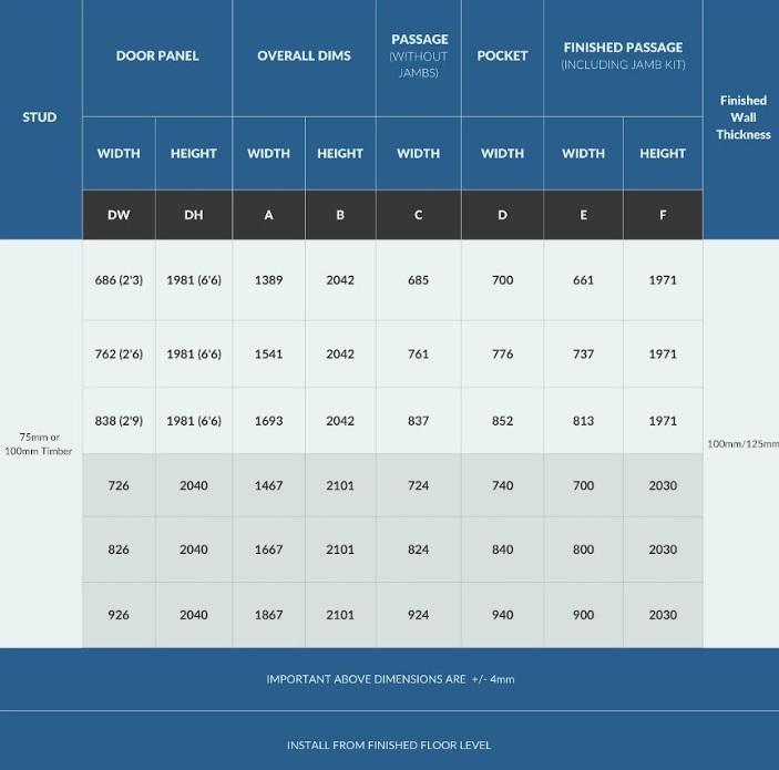 The Pocket kit comes in 6 specific sizes, each made for a standard UK door size so you can choose the door you want and it fits first time, every time!