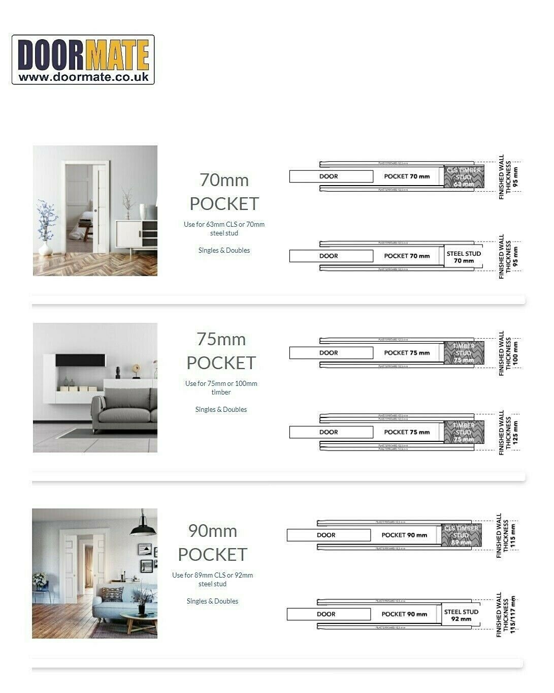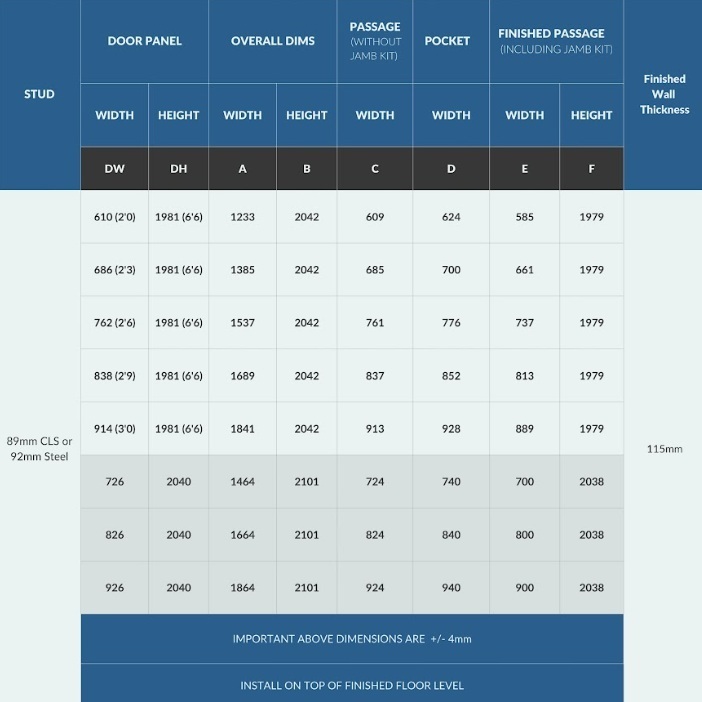 Please make sure you choose the right kit as returns incur return & restocking costs. See Technical Info for more Pocket Door help.