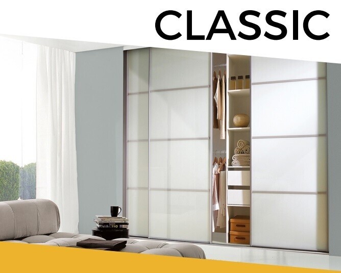 Classic sliding wardrobe doors offer a wide range of designs including single panel, 3 panel & 4-panel options. You can choose between mirror sliding doors, wood effect panel or sleek and stylish coloured glass options in various designs. Make the most of the space in your bedroom with classic sliding doors. All doors will be delivered fully-manufactured with top and bottom guides ready for you to install in minutes.