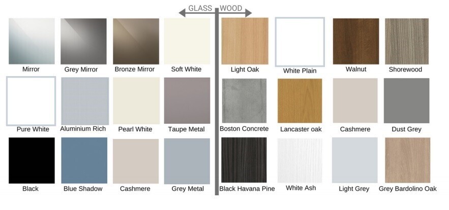 *Choose your wood panel or glass colours.* You can choose as many as you want...
