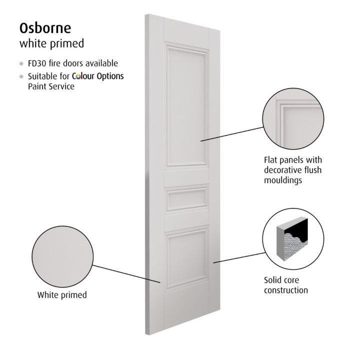 If you're searching for an appealing, white primed door for your home or interior design, the Osborne White Primed Internal Door is an ideal choice for you. Seamlessly melding modern manufacturing technology and a timeless, classic door design into one very desirable interior door, the Osborne is guaranteed to suit an extensive range of both traditional and complimentary aesthetics.