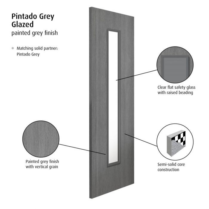 The new Pintado door is a cost effective, painted grey flush door with a vertical grain effect. Contemporary and practical, with a consistent long lasting finish. Please see our Pocket Door Aftercare page for tips on keeping your Pocket Doors looking their best for years to come.