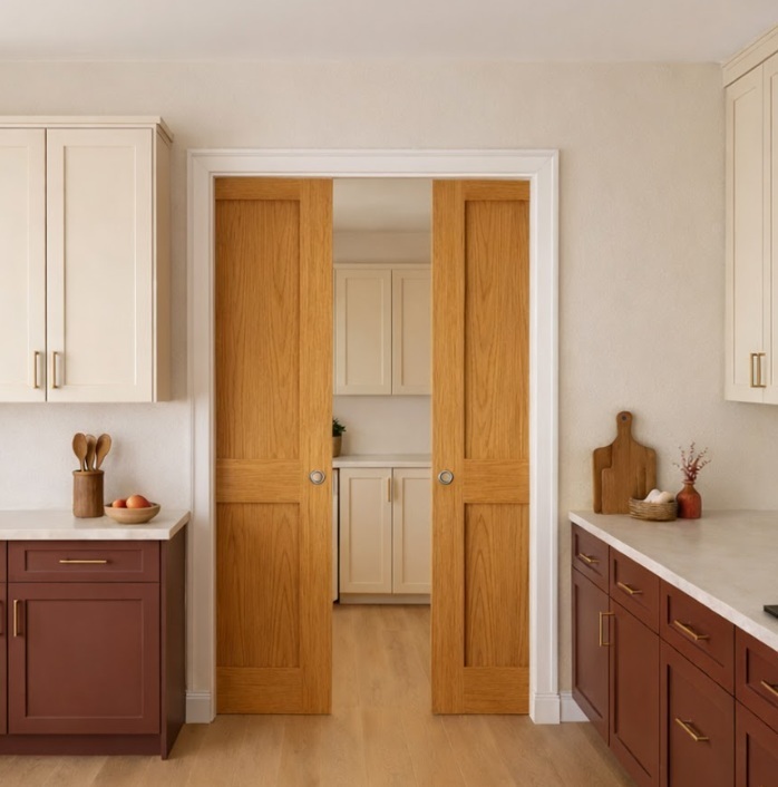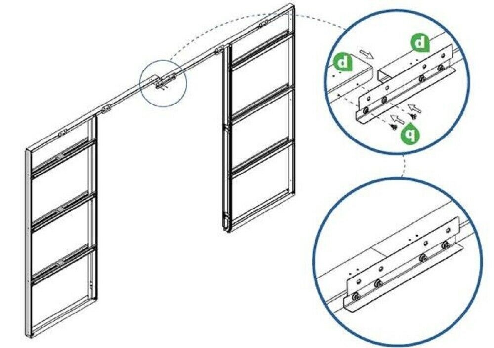 Its so easy, Our Pocket system has an adaptable bracket that is used to connect two singles and make them a double so there is no extra cost for a joining kit. When Installing a double system remember to ensure both systems are perfectly in line and plumb and then the doors will meet exactly in the middle.