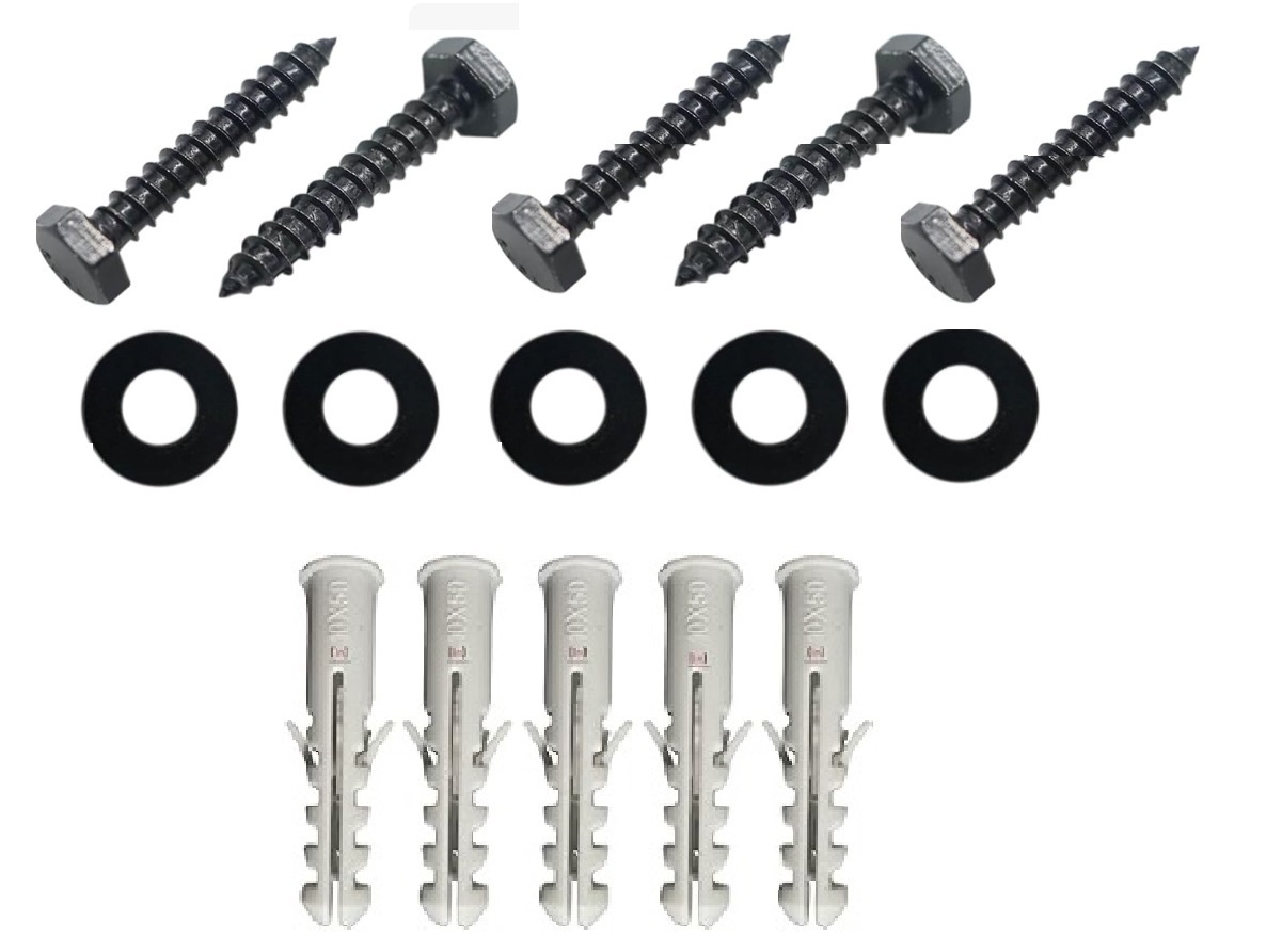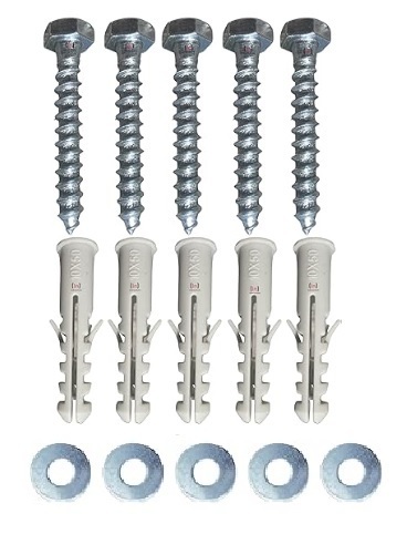We Use M8 Coach Screws for our wall fixings each pack comes with 5 x Fixings 5 x Penny Washes & 5 x Wall Plugs