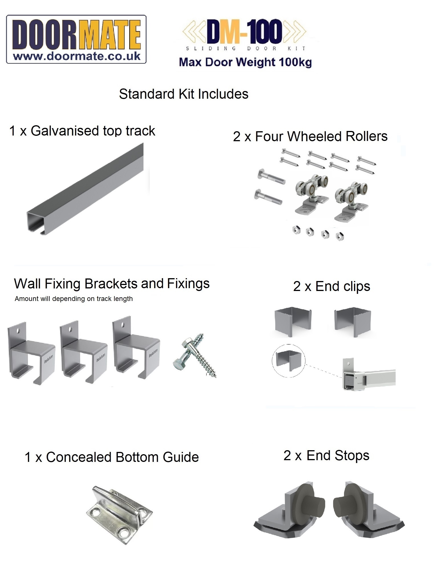 Enhance your outdoor living space with our DM-100kg external sliding door kit. This sliding door gear is designed for doors up to 100kg, such as Garage Door, Commercial Doors, Stables or Warehouse Security Cage Doors. Its also suitable for full height cupboards, in which case the track (pre-drilled) can be screwed directly to the head