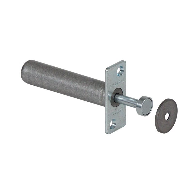 When opening the door the magnet buffer on the piston rod hits a counter plate and keeps the door open