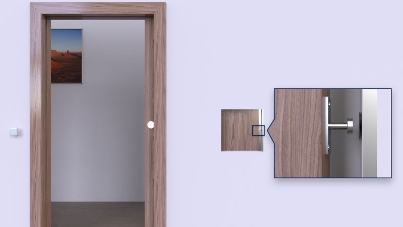 To close the door, just press lightly against its edge and the integrated spring will push the door out of the wall pocket so far that the handle is accessible again