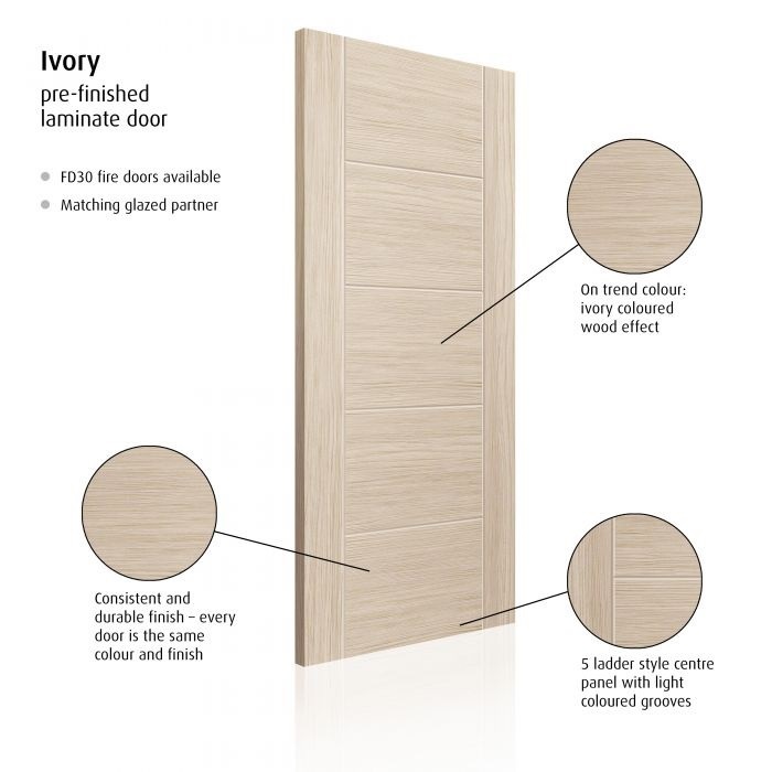 Ivory Laminate door design has been modelled on the interior trend for soft muted colour themes. Perfect for a contemporary interior, the Ivory door will add an understated elegance to your home